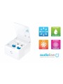 - It disinfects them with a bactericidal solution and dissolves the cerumen, and thanks to a UV-C lamp which ensures a complete disinfection