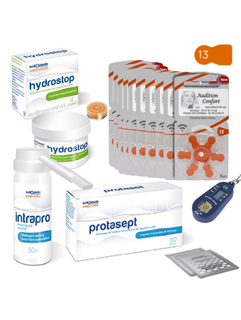 Complete pack including 13 Rayovac 13 battery packs and all cleaning products necessary for the proper functioning of your hearing aids.